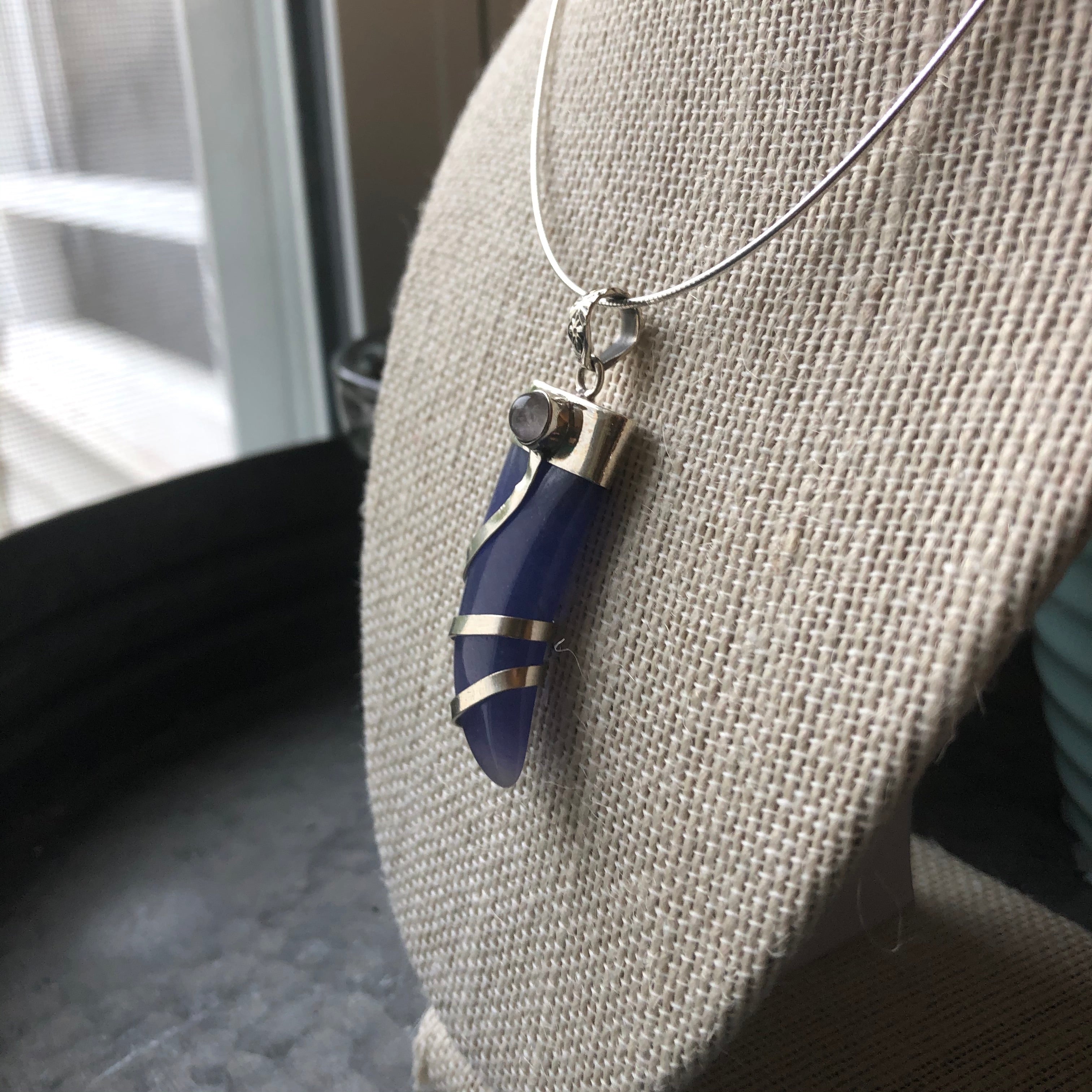 Mounted on a 16" sterling silver chain.