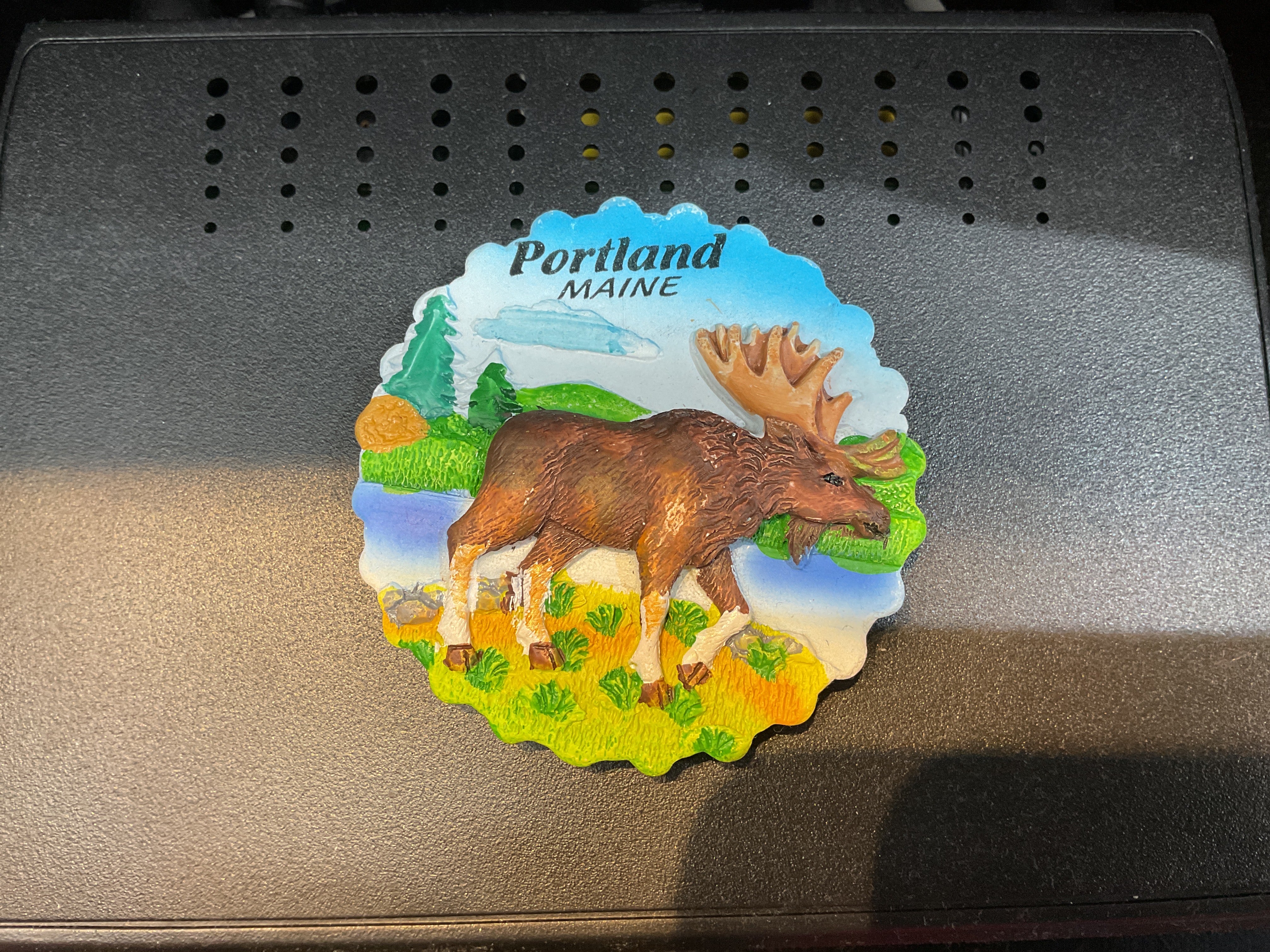 Portland Maine moose round magnet